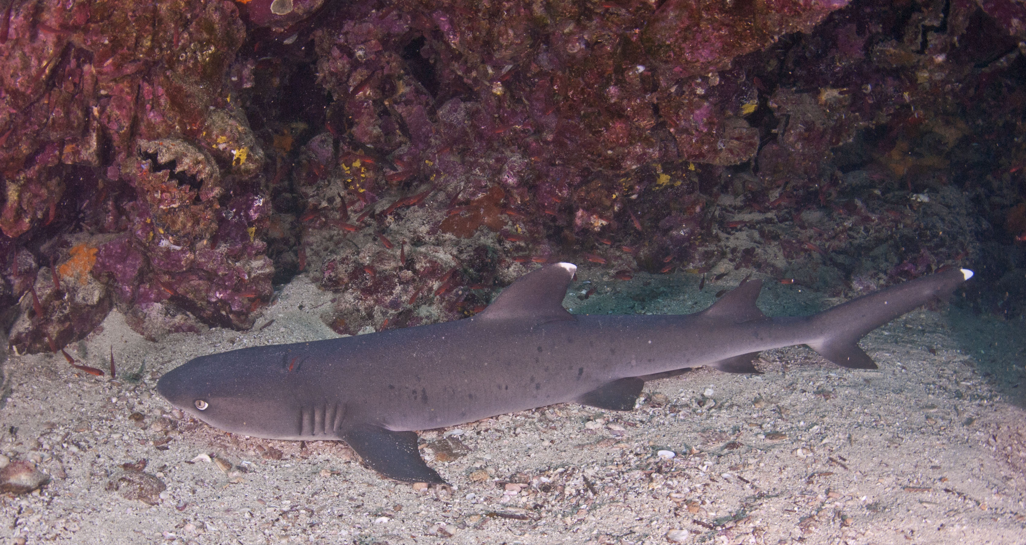 On the second day we dived at Mosquera and North Seymour which are just North of Baltra. Here the visibility was a bit better but still not great. There were a large number of whitetip sharks in this area.