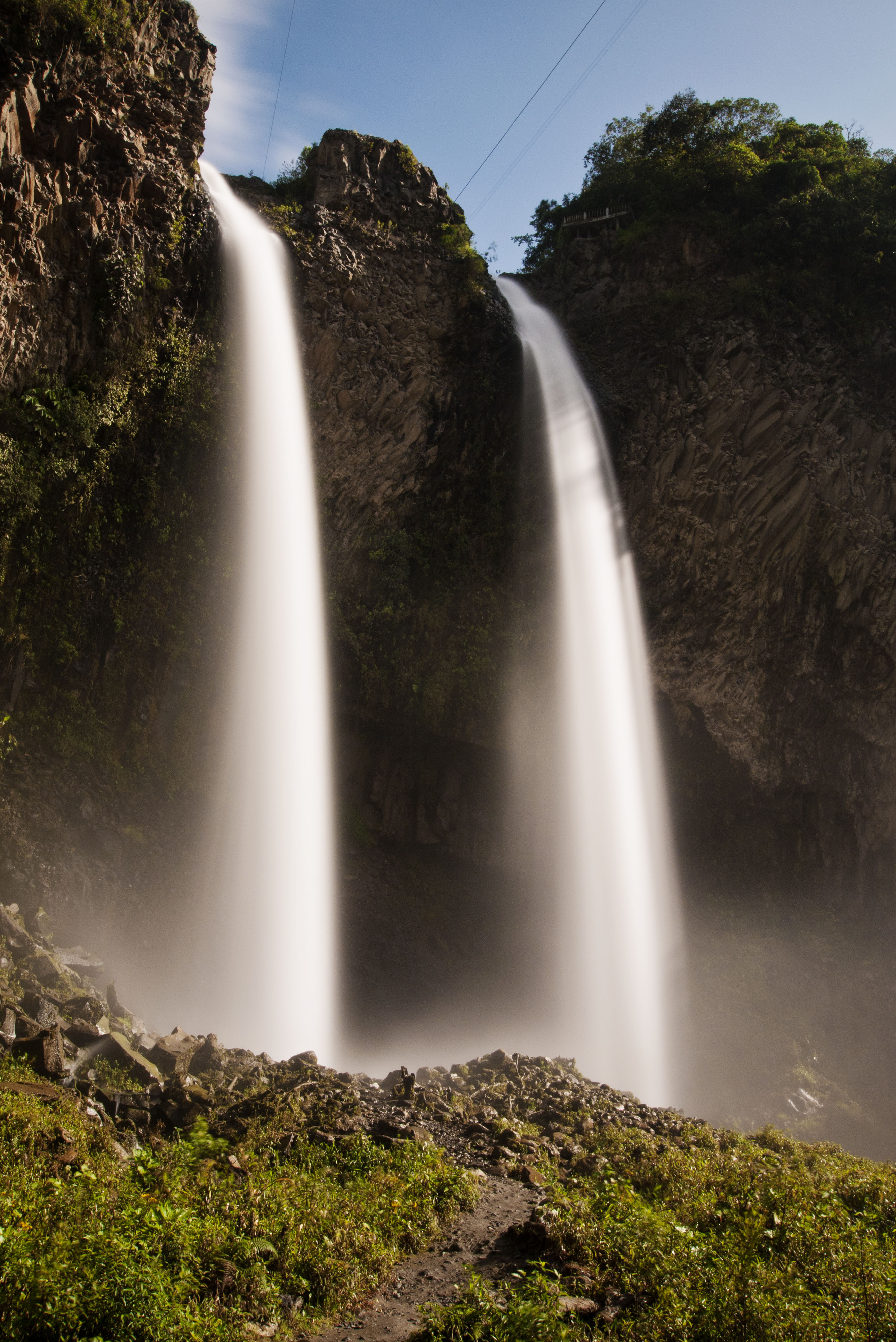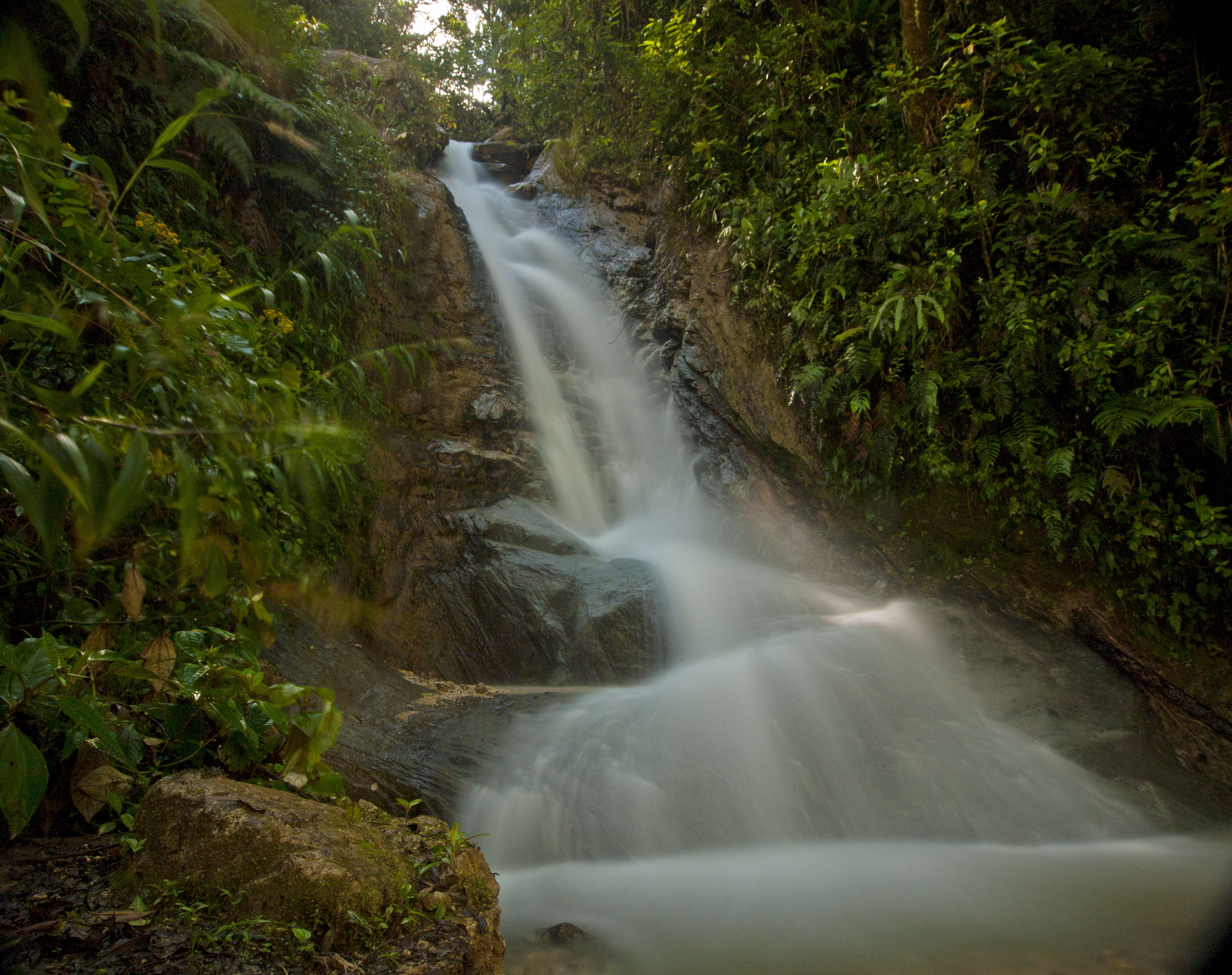 Pequeno Paraiso is between two very big waterfalls. The first that we visited was called the Pailon del Diablo. This involved a trek down into the canyon until you reach a set of platforms to view the waterfall. Here there is a very low cave which you can crawl/walk through until you reach a ledge cut into the cliff right next to the waterfall – needless to say you get soaked getting there !