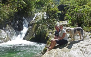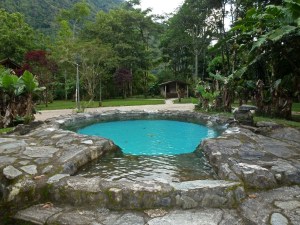 Fortunately we arrived in the spa town of Banos (well Rio Verde around 15km down the road) and discovered Pequeno Paraiso (literally a small paradise). This is a hostel and campground set amongst beautiful gardens. It is run by Marc and Sue, who are ex-overland crew for Toucan, and their gorgeous dogs Tasha and Pinga. Pequeno Paraiso is a stop off for all the commercial overland trucks who spend three nights here. Smaller campers can park in the gardens near the kitchen area but there is a separate area for bigger trucks on the other side of the property.