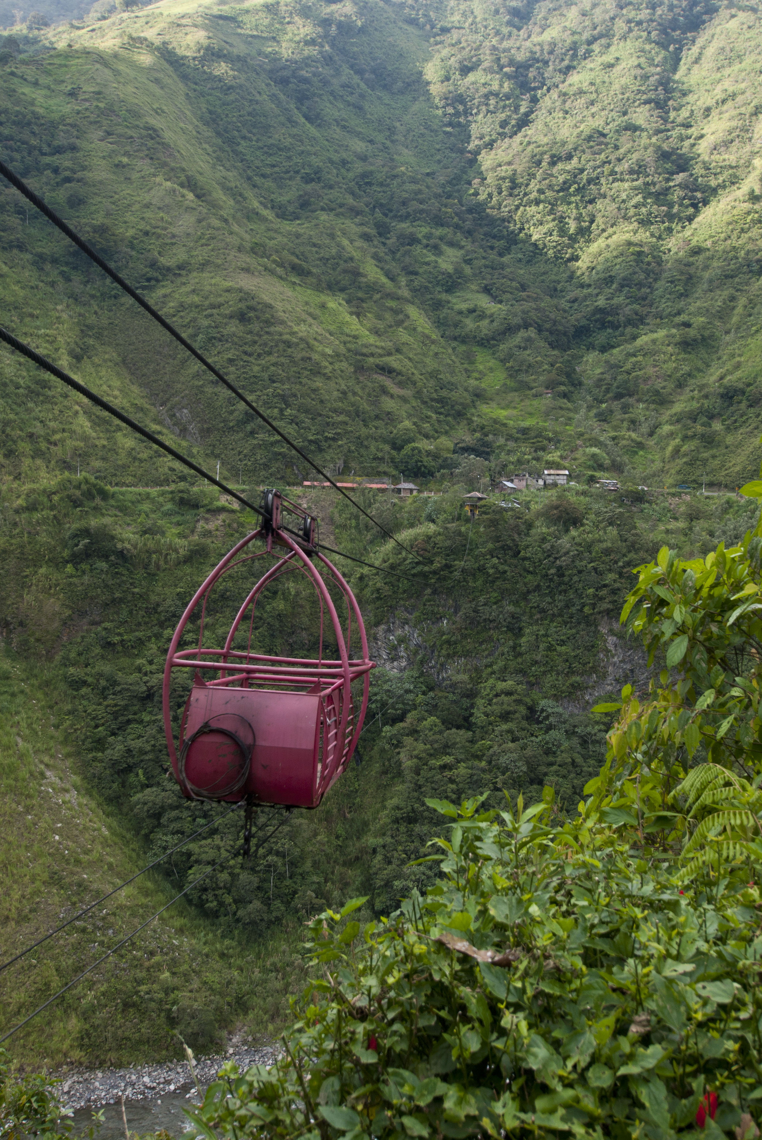 Between Banos and Rio Verde the River Pastaza runs in a deep canyon. There are a number of Taribatas (small cable cars) that run across the canyon allowing you to access the other side. They are sited where there are big waterfalls falling into the canyon. We decided to cross the canyon on the Manto de la Novia Tarabita and walk the trail on the other side before crossing back on the San Pedro Tarabita.