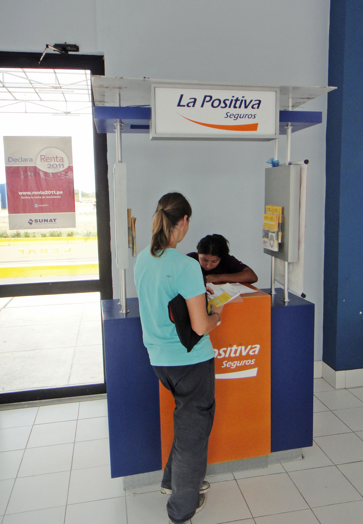 After this you continue down the building and on the left there is a small SOAT booth where you can buy insurance. There was no one there when we arrived but the woman turned up while we were doing the vehicle import. You may need to ask (it is closed at weekends and you will have to buy insurance in Tumbes). SOAT cost us $25 for 3 months although we have heard of people paying much more !