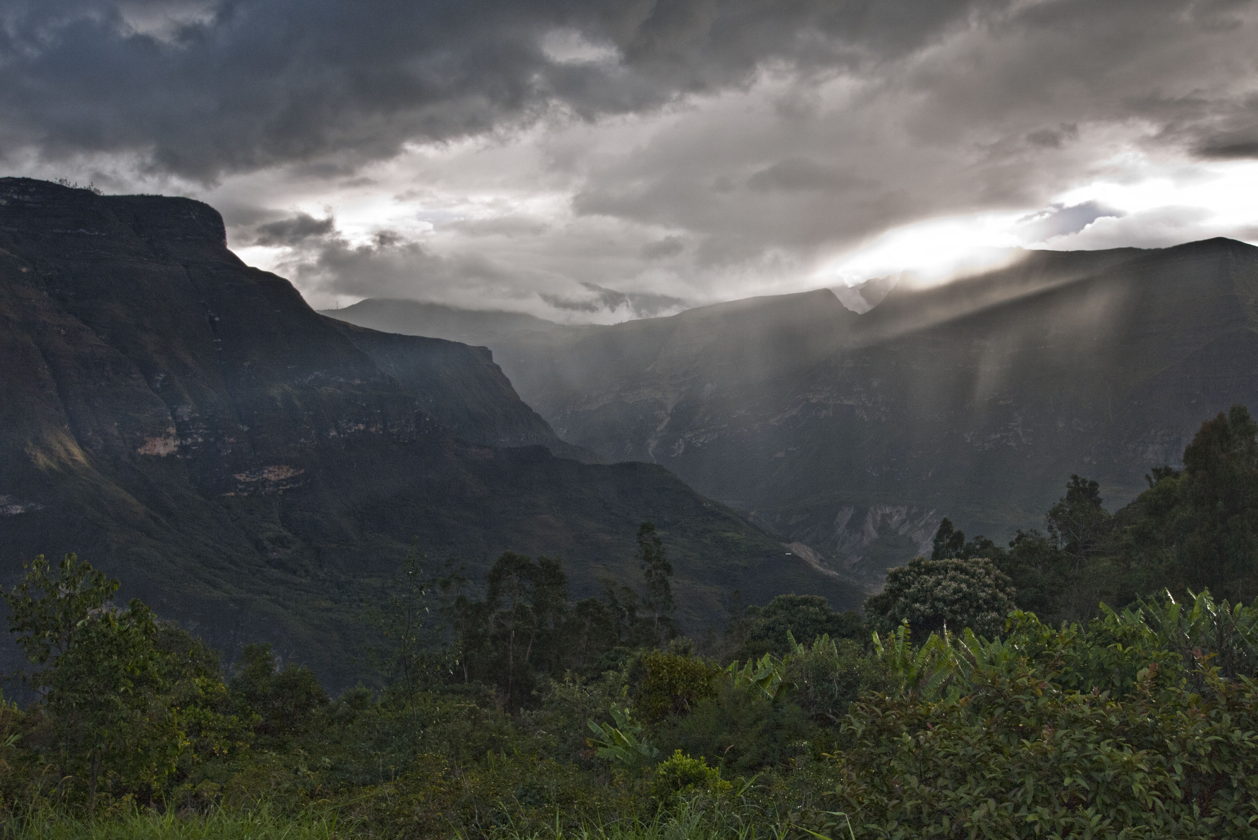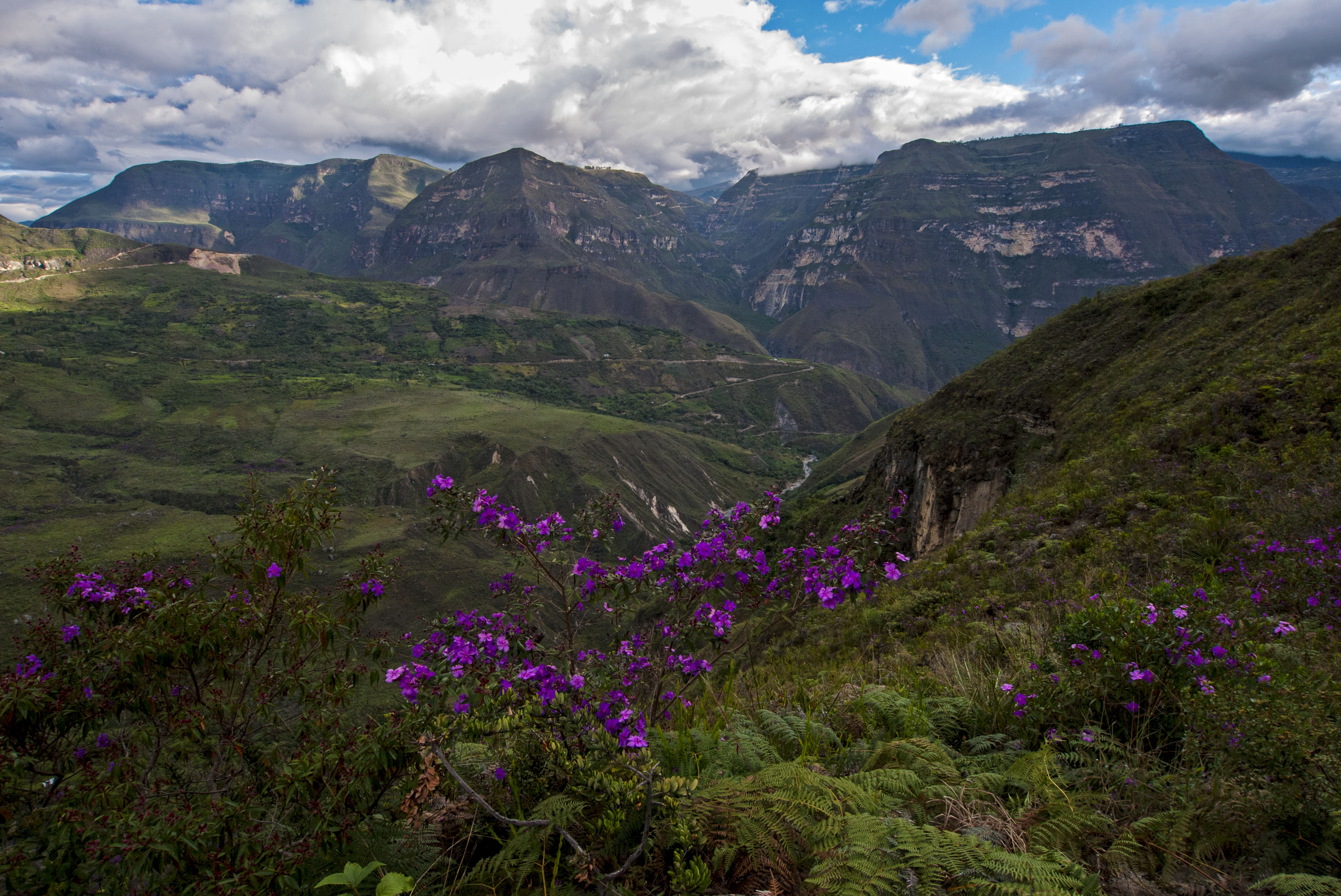 The road inland from Lambayeque is a fast good road but it still took us all day to reach Bagua Grande which is a lowland town set amongst rice paddies. We had a very uncomfortable night here where it was hot, wet and there were squadrons of mosquitos. In the morning we got on our way and the drive quickly became spectacular as we followed the Rio Utcubamba through its deep gorge into the mountains.