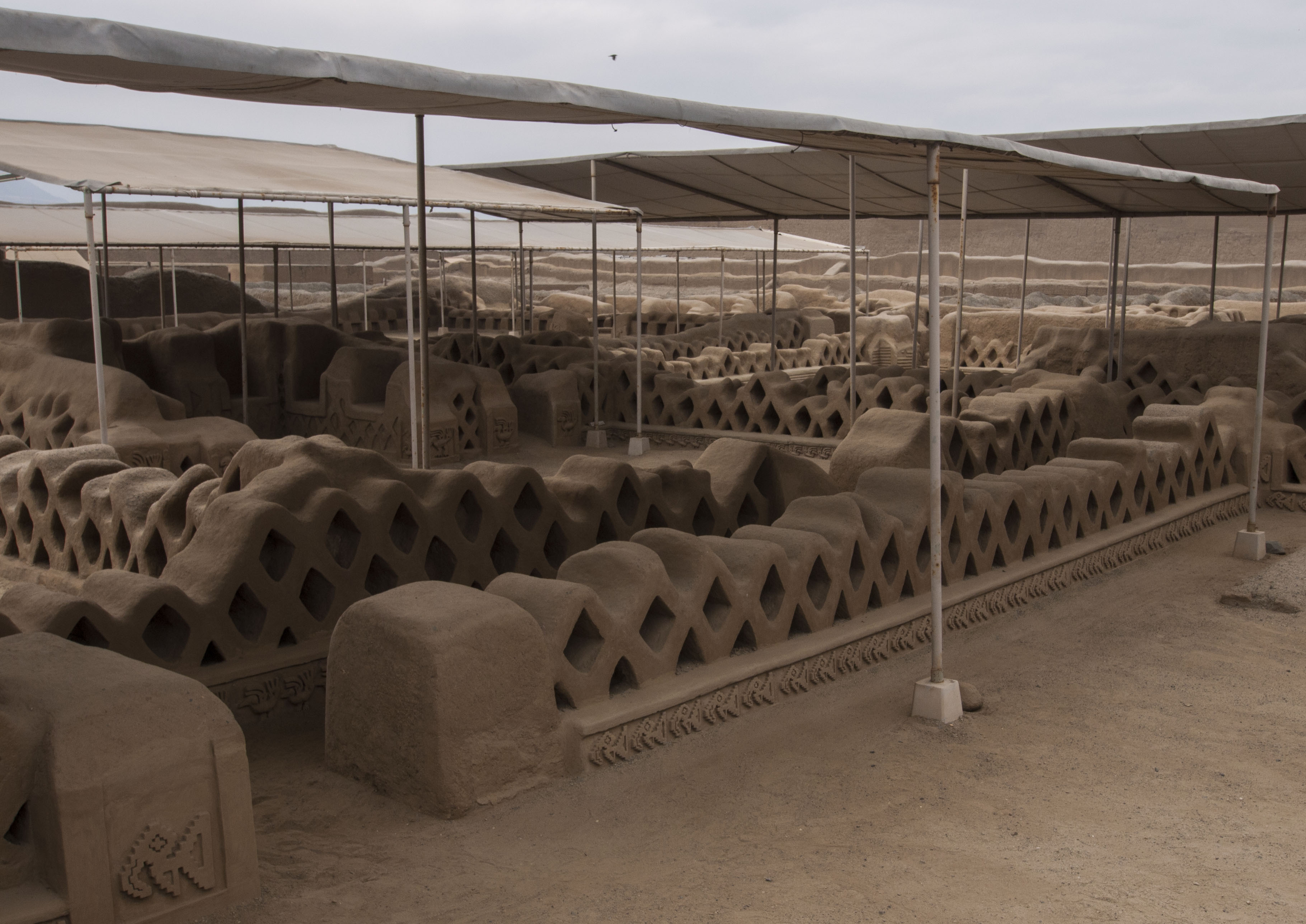 Chan Chan was the capital of the Chimu empire which came to pre-eminence around 1100AD. The Chimu were masters of irrigation and set up a series of aqueducts that brought water from the neighbouring Chicama valley to enable them to live in the desert. This was to prove their undoing as the Incas conquered them (in the 1470s) by cutting off their water supply and eventually peacefully conquering the city and leading to its demise.