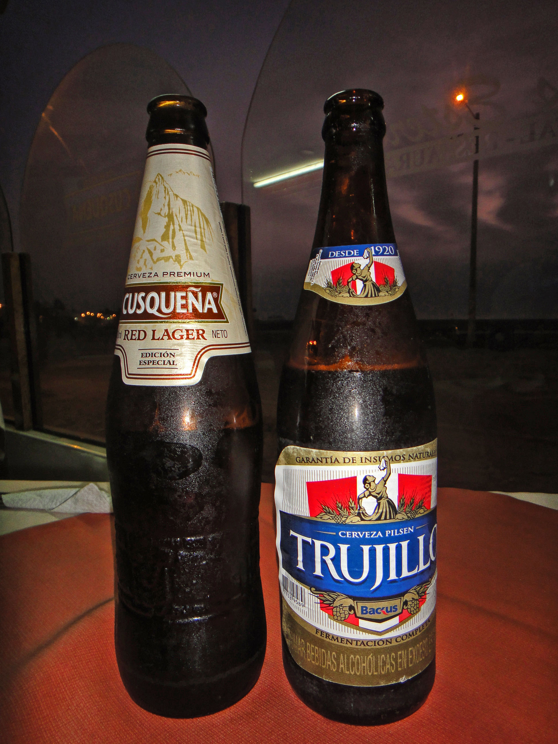Huanchaco is a relaxed sea side resort which is a great place to kick back for a couple of days. The surfing is great but the water is a bit on the cold side. There are some good restaurants – on the expensive side though – apparently including the President of Peru’s favourite. This gave us the oppurtunity to have our first beers in Peru.