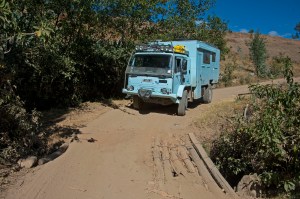 In the morning we started to head down the canyon back to the Callejon de Huaylas – the journey down was a bit easier as we knew what to expect. However we came across a bridge which we had crossed without too much problem on the way up. This time as we went across there was a sharp cracking sound and we lurched to one side – I gunned the engine and we made it across. That was a close one !