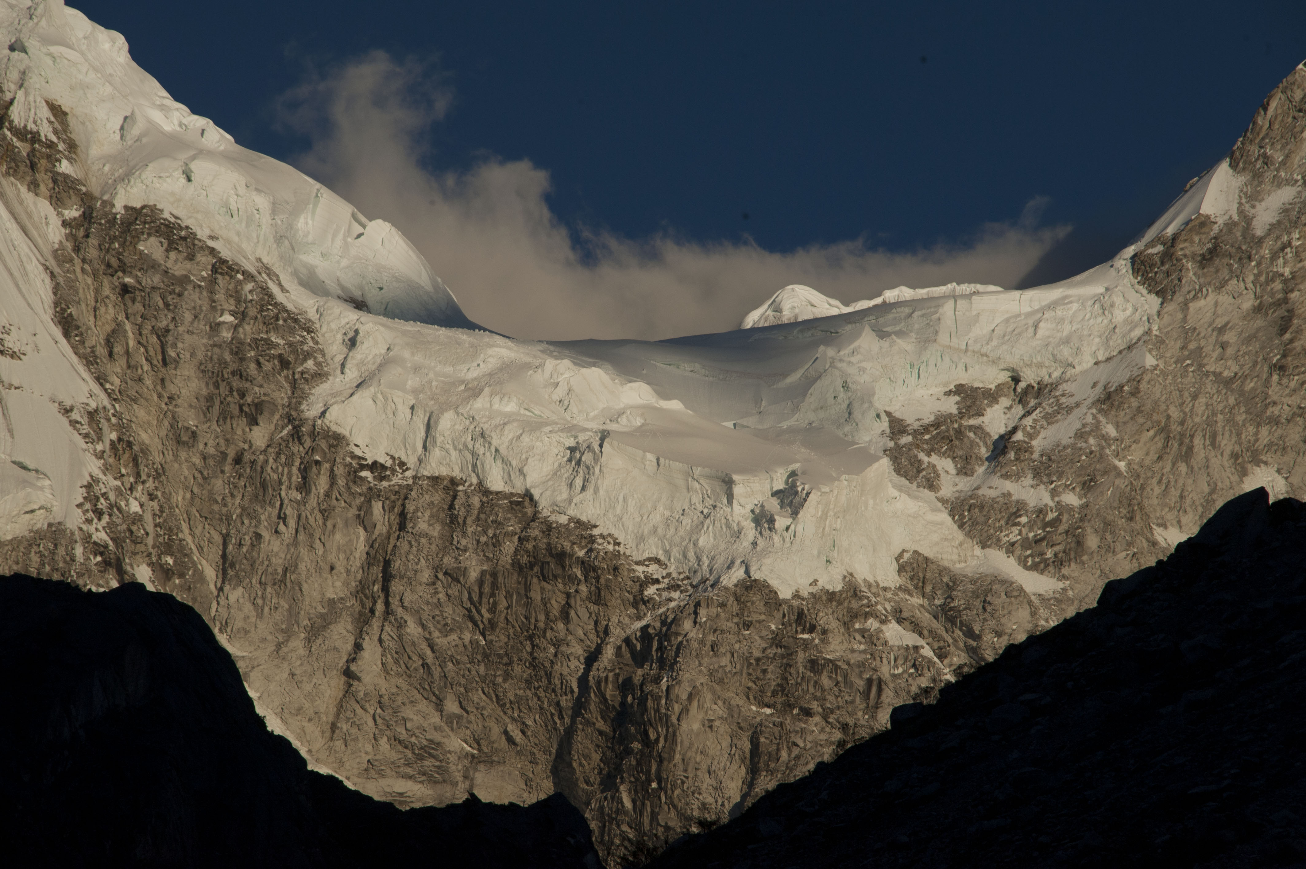 As soon as the sun went behind the mountains the temperature dropped like a stone and the night was sub-zero. We had a terrible nights sleep because of the altitude – serves us right for not acclimatising more slowly !