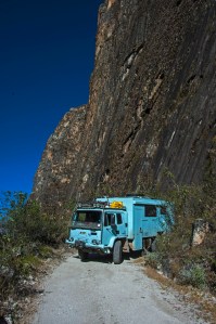 When we got to a plateau near the top we thought we were through the worst, the road definitely improves but unfortunately it becomes lined with low overhanging trees. With patience and a bit of determination we managed to fight our way through. With a broken mirror , a few scratches and a tonne of foliage attached to the roof we finally made it to the top.
