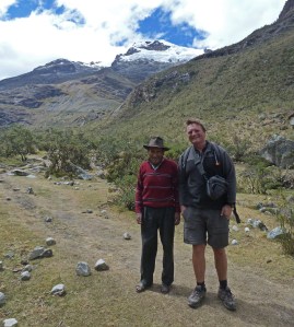As we hiked along the river we came across a staging area for multi-day hikes and discovered that there was a trail to a high altitude lake called Laguna 69. The valley that we were walking up was very pretty and we could see a number of snow capped mountain peaks as we walked – including the mighty Huascaran mountain, the tallest in the Cordillera Blanca at 6768m).