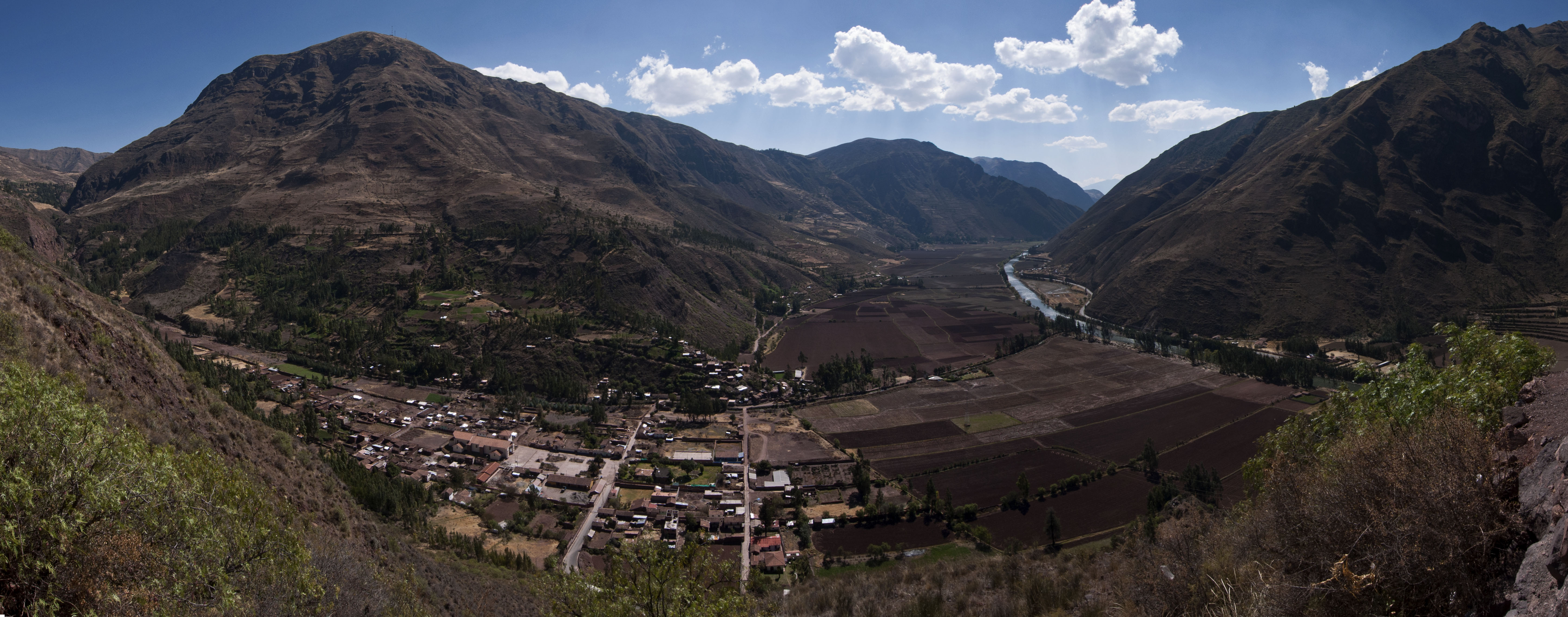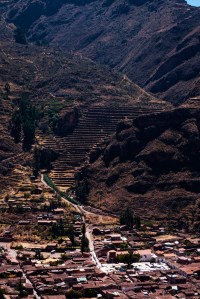 The Sacred Valley is a steep sided river valley with a narrow but extremely fertile alluvial plain. This plain was heavily exploited agriculturally by the Inca. The Rio Urubamba provides the water source for this valley and this is the river that flows below Machu Picchu.
