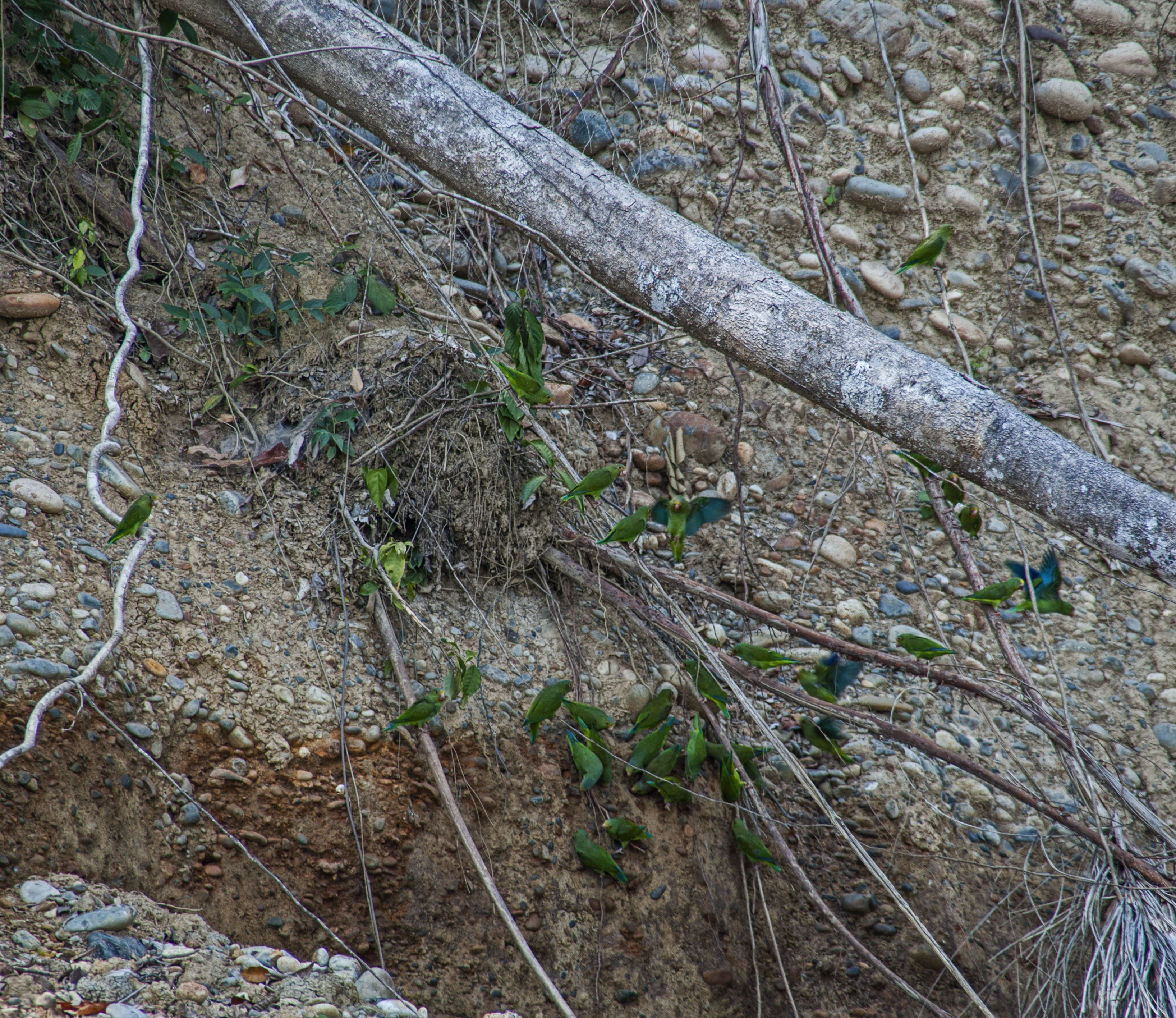 In the morning we were back on the river early as we travelled downstream to a Parrot Clay Lick. Unfortunately,  it was raining lightly which meant that only limited numbers appeared on the clay wall, most of which took to the still dry clay under overhanding foliage so our visibility wasn’t great. Fortunately we had seen a clay lick on the river the day before with a full complement of parrots so we weren’t too disappointed.