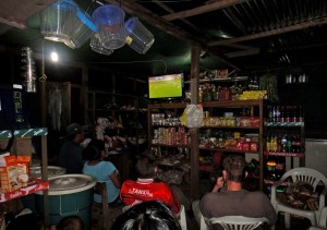 There was some excitement to be had as there was a small bar which had power so could serve up cold beer as it had its own generator – very welcome after a few days with no cold drinks.  Peru were playing Venezula that night in Football which meant that the power would be left on longer than normal. The place in town with the biggest screen was the local general store. It was slightly strange but good fun to be sitting in a shop drinking a cold beer and watching football with the locals.