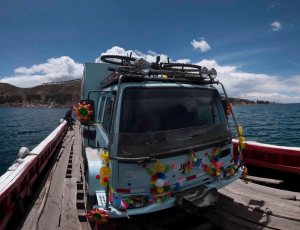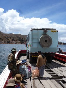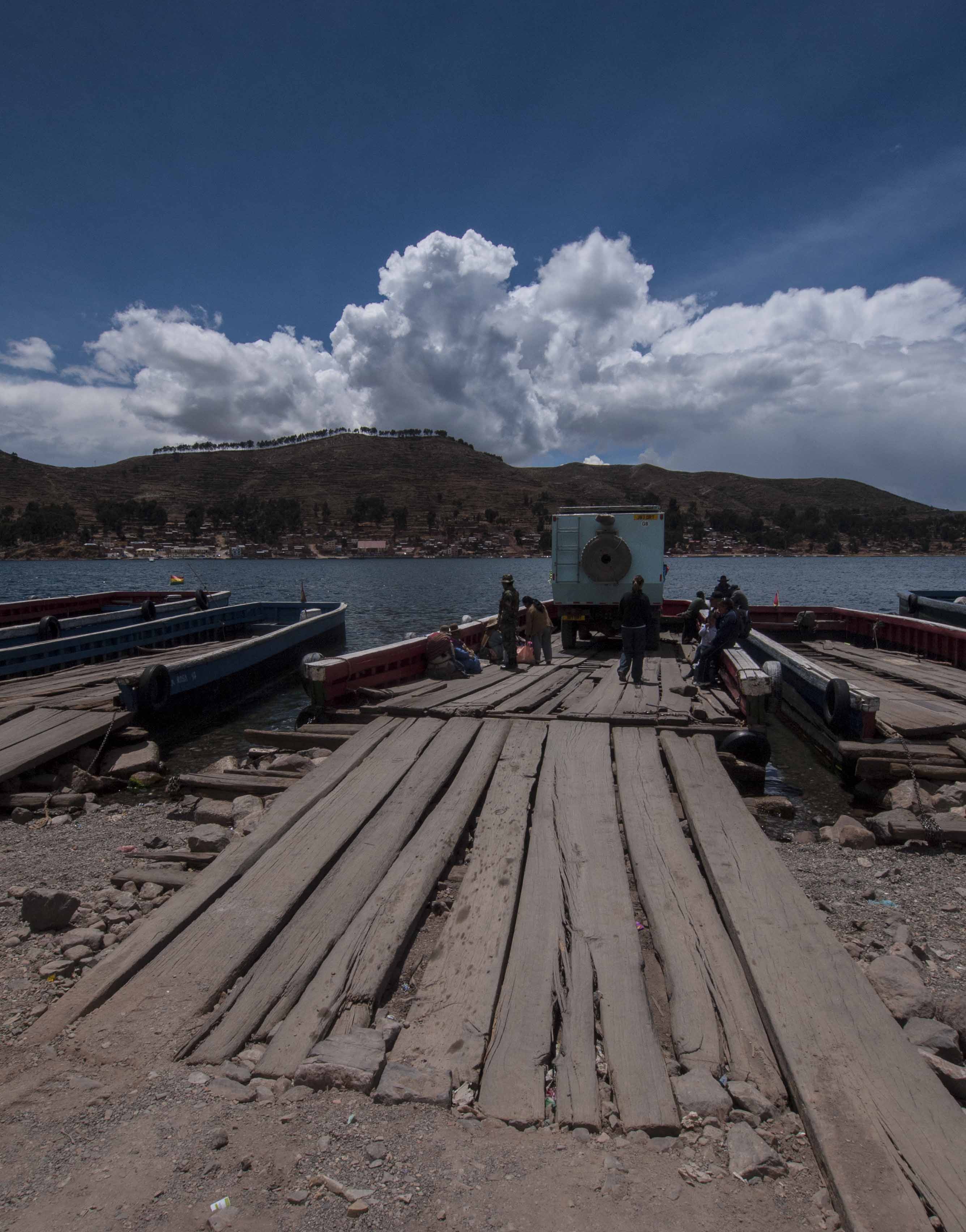 Blessing over it was time to set off for the mainland of Bolivia. After only about 30km of driving we came to a small town and a ferry terminal where barges cross the 500m of water to the mainland.