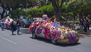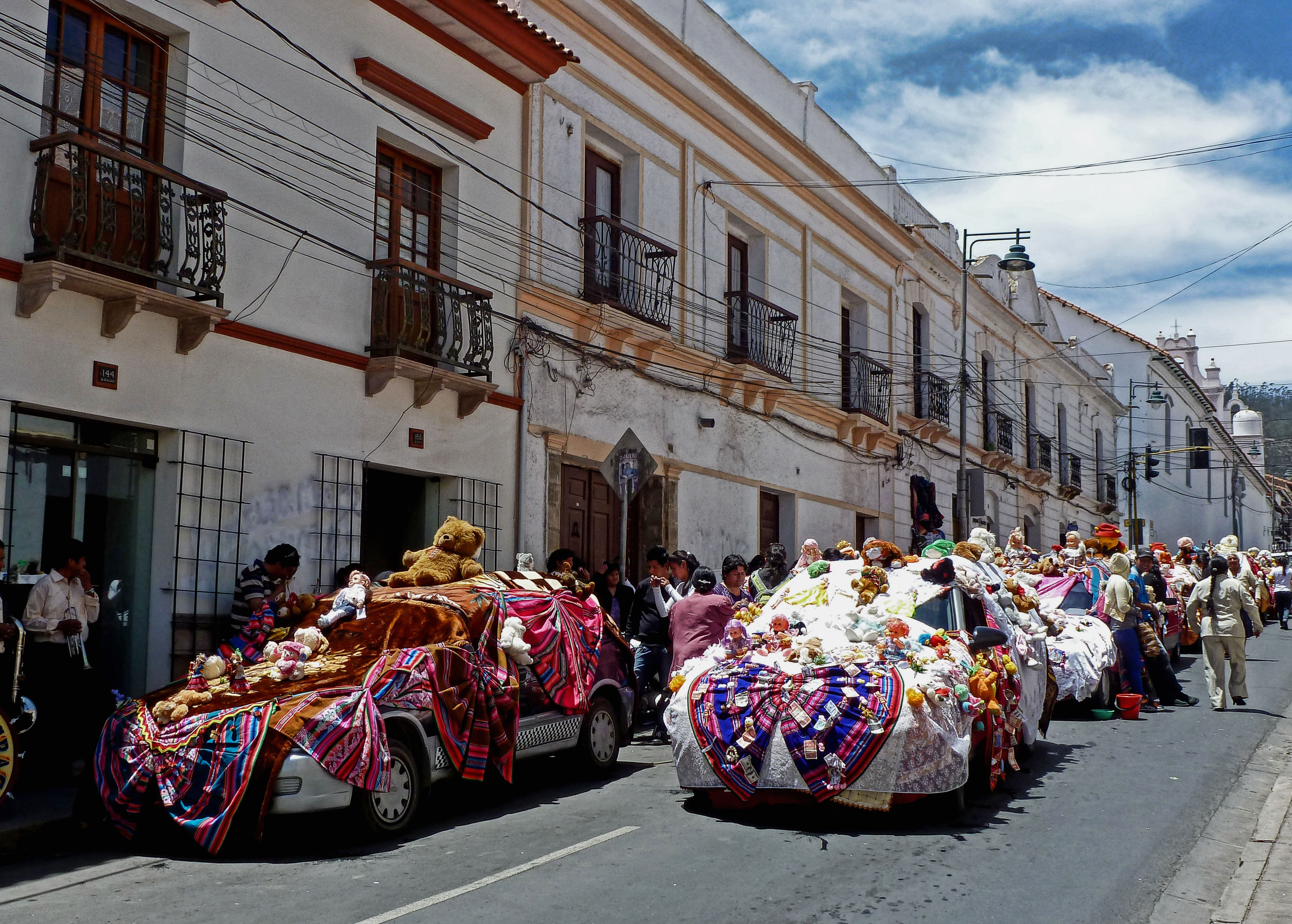When we first arrived at the square there was a weird procession taking place with cars decorated with cloth and children’s teddy bears ! This ended in a street near the square where there was some dancing and the cars were being blessed with alcohol.