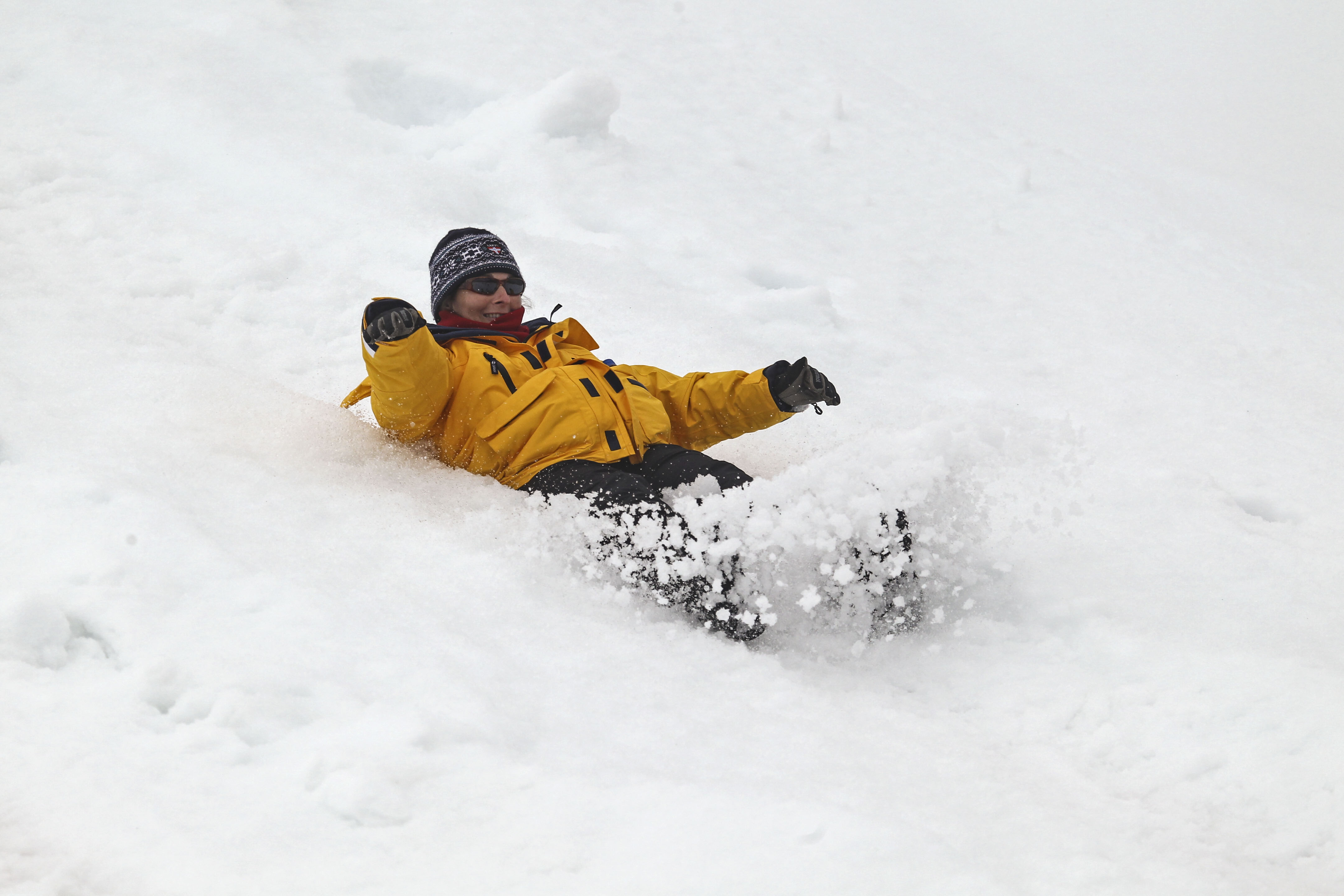 We hiked up to the top of the hill but on the way down we were encouraged to slide down the snowy slope. Chris, the onboard doctor, stood by at the bottom with a worried look on his face.