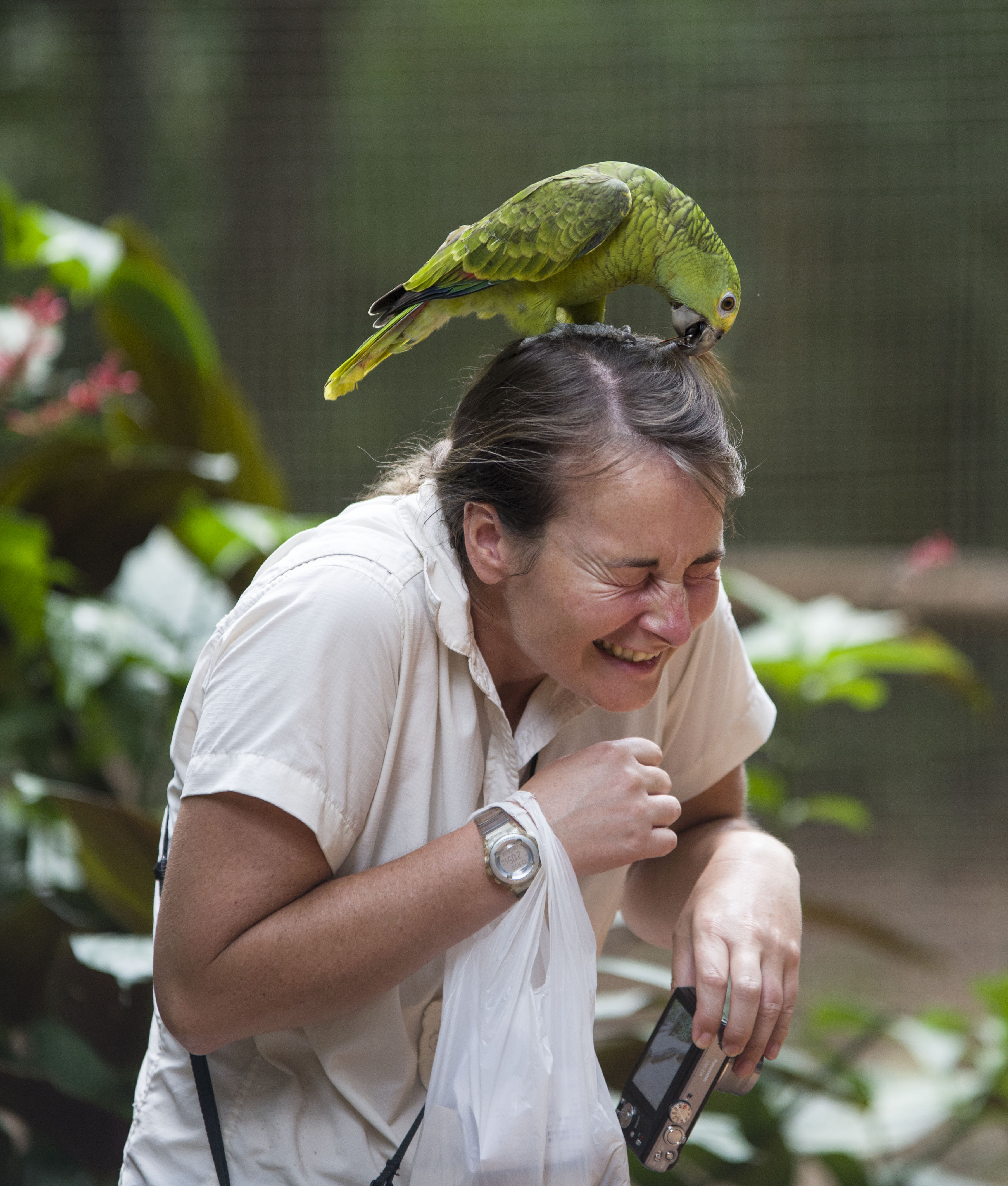 There are a number of walkthrough cages here that allow you to get up close and personal with the birds. Sarah got very close to one parrot that landed on her head and started to peck at the clip in her hair. Fortunately one of the park workers saw this and rushed to her aid.