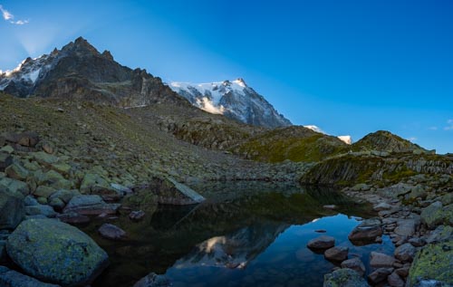 A small detour at the start of this hike can take you to a small mountain lake (Lac Bleu) which is slightly above the Plan du L’Aguille gondola station.