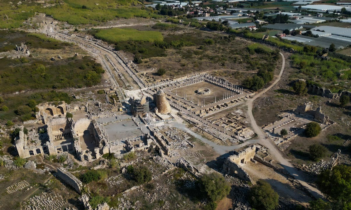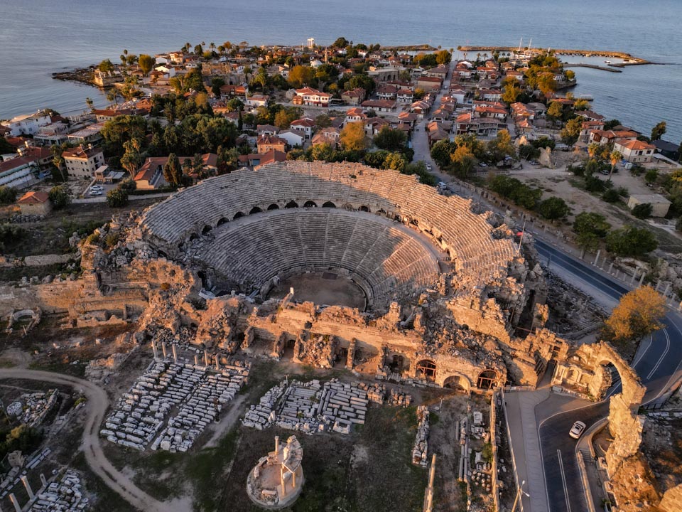 Side is a town that has been built on an ancient city and the town is an active archaeological site with lots of gaps between the buildings which are occupied by ruins.