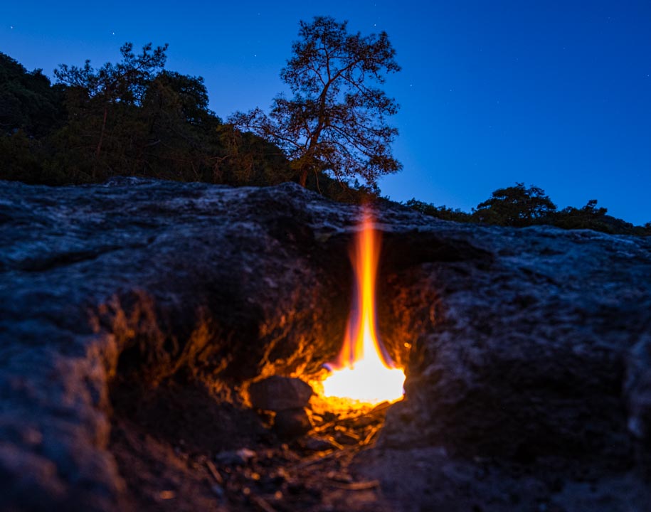 Best visited in the evening is Chimaera or “burning rock” where natural gas emits from the rock and spontaneously lights to create the eternal flames.