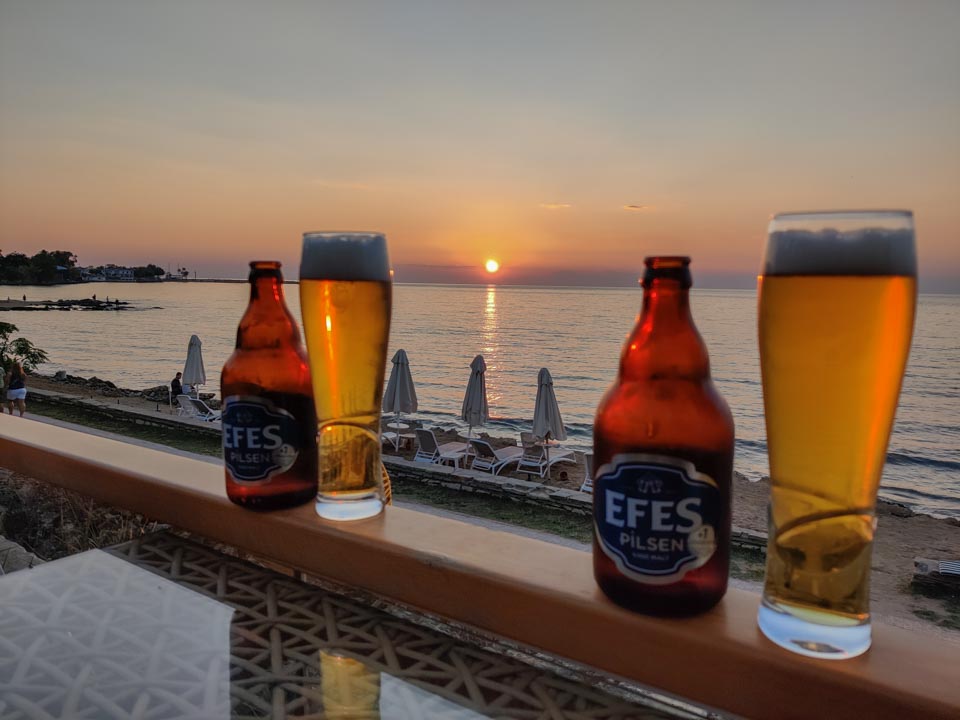We were staying in a rustic hotel with small cabins but it was fronted but a swanky modern bar with a great sunset view over the sea.