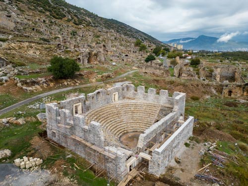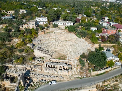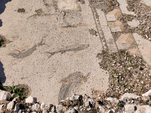 Also in Kizkalesi we visited the remains of the small ancient city of Elauiussa Sebaste. Not much has been excavated but there is a theatre and baths where mosaic floor tiles can still been seen in some sections, including images of fish and dolphins.