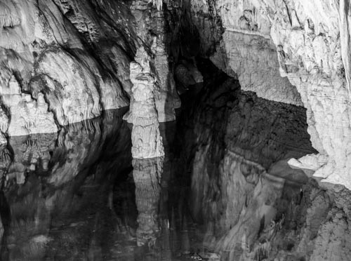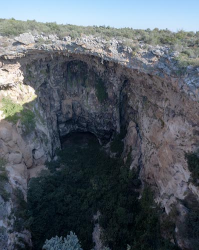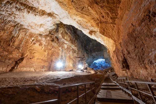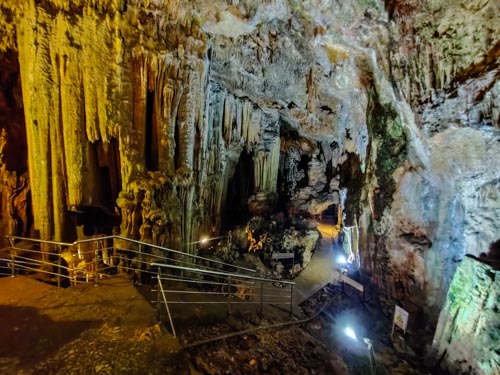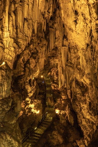 Hell Cave is a deep but fairly open shaft which can’t be accessed but is viewed from a glass bottomed platform above, whereas Heaven Cave is a massive cave in a gorge which has a path that drops down into its depths.  At the mouth of the cave is a ruined church  and below this the path drops down about 500m into the bowels of the earth. At the bottom a rushing noise can be heard from an underground river.