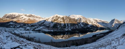 A fantastic hike in deep snow where I was the only person on the mountain up to Red Pike was the reward for my patience. I didn’t quite make it to the top as the snow kept getting deeper and over knee deep snow on a 45 degree slope was proving heavy going. However, the views back over Buttermere and of Ullswater were worth the effort.