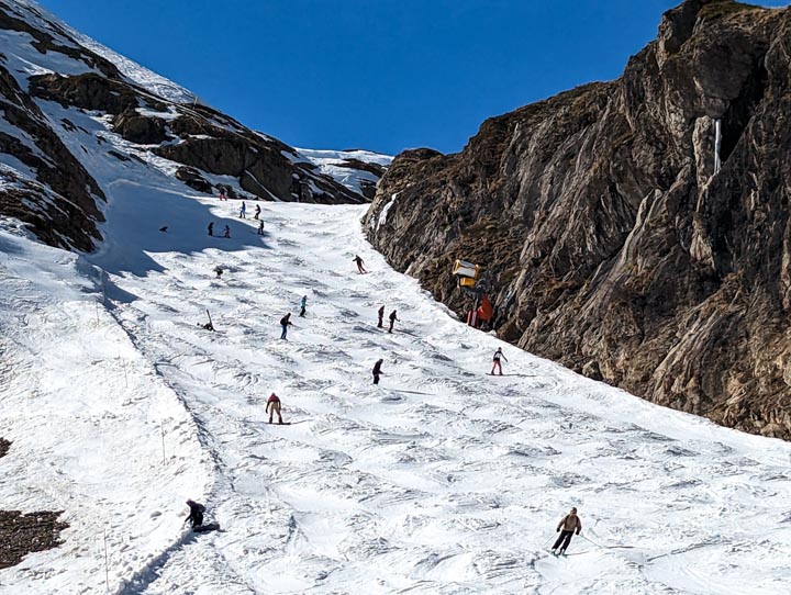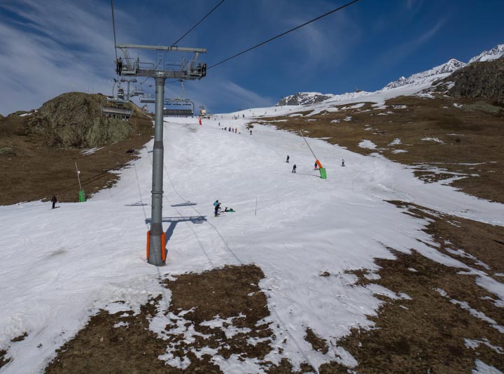 This turned out to be a good decision as February has been one of the worst winter months for snowfall in history. Only 5cms of snow fell on the slopes throughout the whole of February. The normal expectation for this part of the Alps is around 62cms, so we are way off the average.