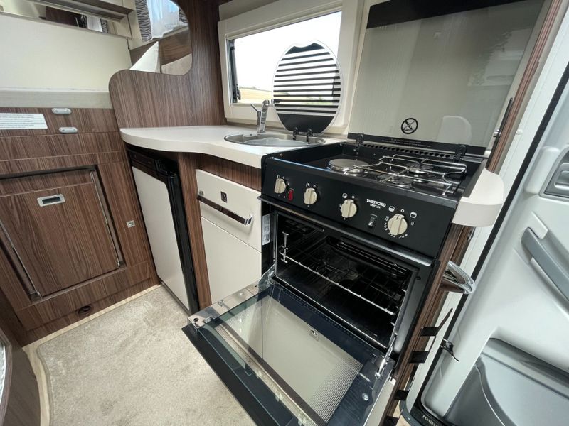 It is based on a Fiat Ducato van and has a fixed rear transverse bed over a large garage (back locker). At 3 years old it has done just over 10,000 miles so was only lightly used and the interior was in great condition, the previous owners looked after it well.