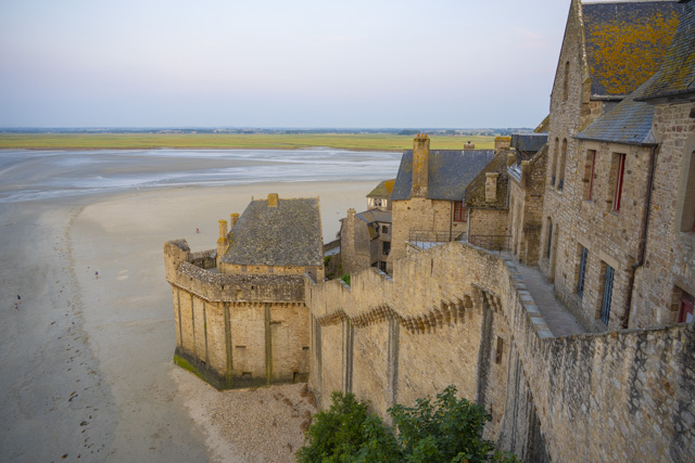 The bay around Mont-St-Michel is shallow and the tides move very fast – it has been said to move as fast as a galloping horse but while we were there the water was fairly low and a large sandy beach was in evidence around the island.