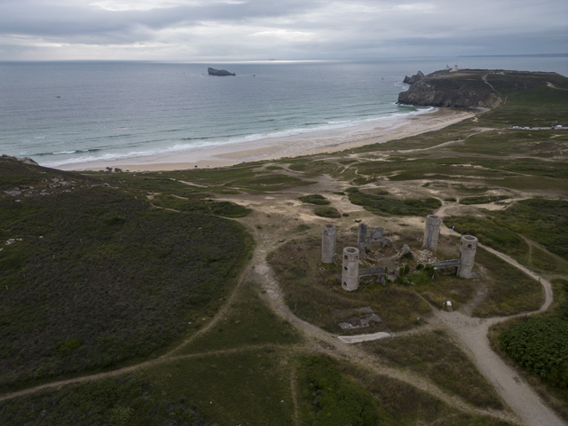 On the way to the Pointe du Pen Hir are the remains of one of the gun emplacements from the German WWII Atlantic Wall. There are big concrete bunkers and a network of trenches at the top of the cliffs.