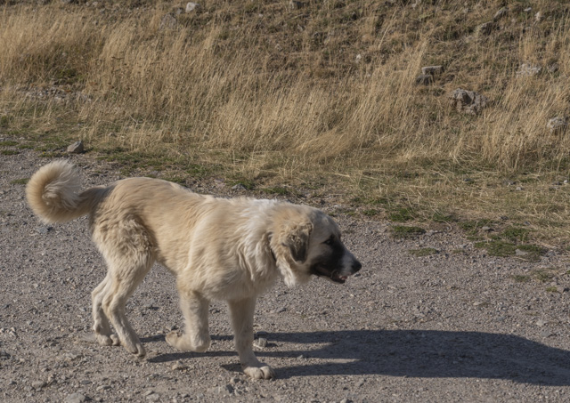 In the evening we were visited by two flock guardian dogs who were very friendly and it was a great opportunity to interact with these working dogs up close. We felt that this was probably a normal evening stop for them as they meandered around the motor-homers preparing their dinners !