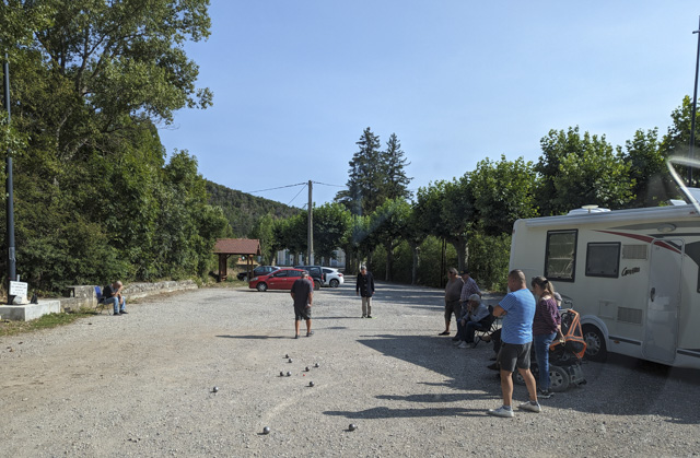 We parked in the town Aire and soon after we arrived the local pétanque club arrived and played pétanque right in front of our camper so we pulled out our chairs, poured some glasses of wine and enjoyed the show! It’s good to see how it should be done and mades our attempts seem pretty feeble by comparison.