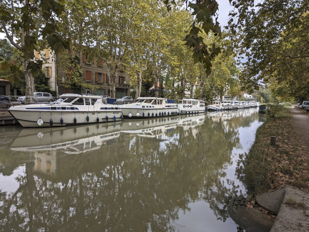 We had found a lovely free park-up overlooking a lake which is used as a reservoir to keep the Canal du Midi, which passes through the town, topped up. The canal du Midi is a 360km network of navigable waterways which links the Mediterranean to the Atlantic.