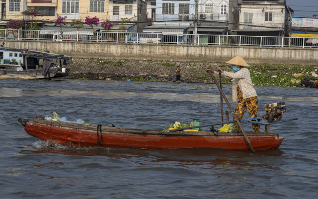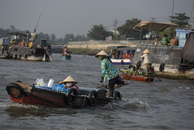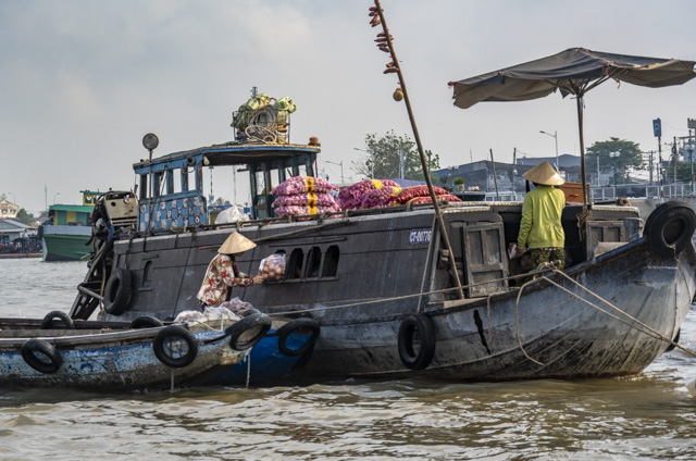 We also visited some of the narrower waterways and took a boat trip in a traditional hand paddled boat but for me, the most interesting part of the tour, was the trip to the Cai Rang floating market. This is close to the town of Can Tho and is different from the floating market we visited in Thailand as it’s a wholesale market.