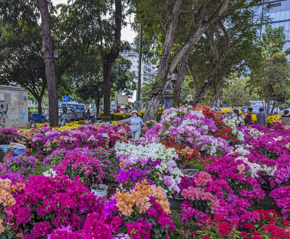 On the plus side however, there were huge numbers of decorations around the city, masses of flowers everywhere (the Vietnamese love their flowers) and there was a real party atmosphere in the lead up to the celebrations, which are usually spent with their families. A massive open air flower market opened up in District 1 to provide flowers for people’s Tet decorations.