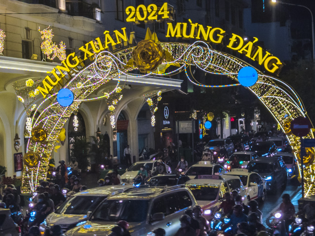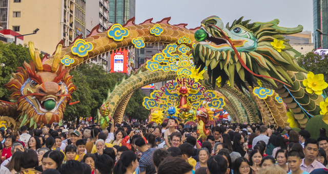 A major road in the centre of District 1 had been pedestrianised and decorated with flowers and dragons and there were signs everywhere saying “Chuc Mung Nam Moi” or “Happy New Year”.