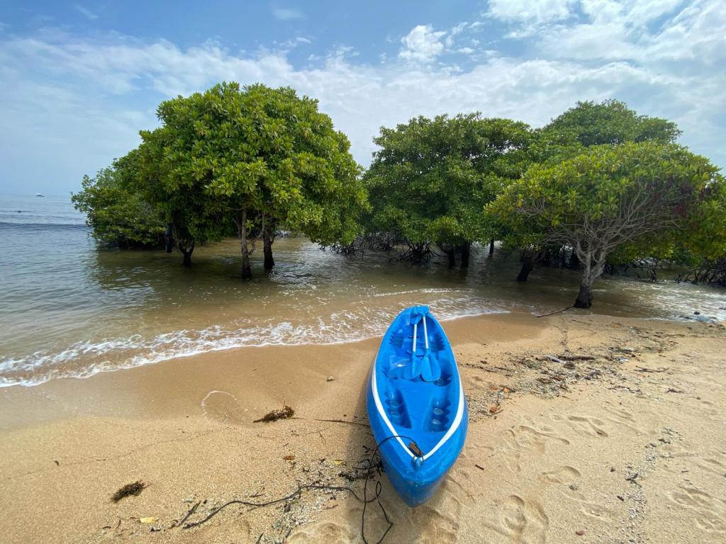 Who knew that mangrove roots are so strong and springy. When we lifted a low lying branch to get through a narrow channel, it sprung back hitting us and tipped us over – luckily the camera was in the dry bag at the time. Seeing as we were already wet from head to toe, once we made it through to the beautiful beach we decided to stop off for a swim. There is also fantastic snorkelling off the shore here, which we discovered on a boat trip on another day.