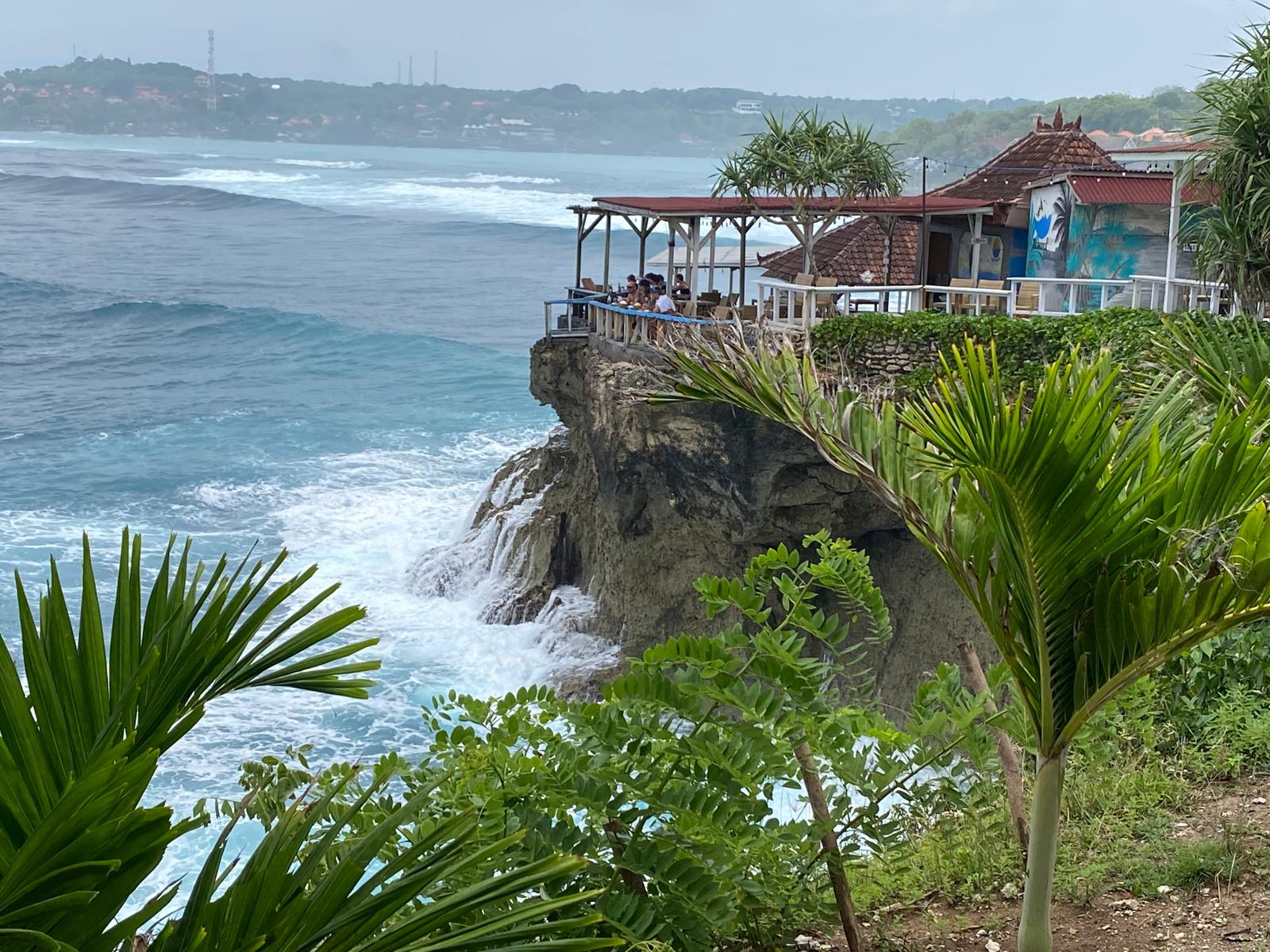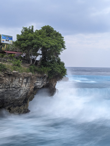 At the tip of Ceningan Island is a small restaurant built into the cliffs overlooking the sea from where you can cliff jump (for a fee), although not the day we were there as it was too rough. This was our second soaking of the day.