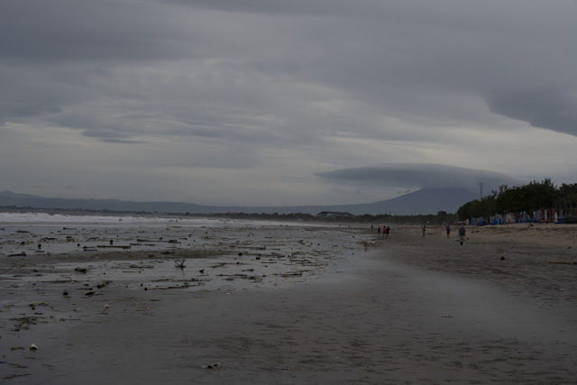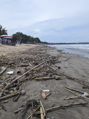 The beach in Kuta has a large tidal range, but the tide brings with it lots of debris and rubbish which a small clean-up crew try to keep on top of but largely fail.