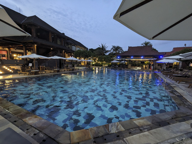 After our hectic time in Vietnam we needed a few days to relax, so we picked a nice hotel on the beach in Kuta, which is only a short distance from the airport. The hotel was pretty big with two restaurants, a cafe, large grounds, a lovely big pool and bizarrely, a tattoo parlour.