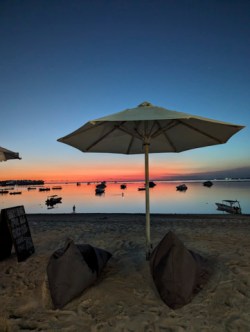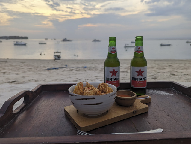 The hotel had beanbags right on the beach and it was the perfect location for a sunset beer or two. Finding a restaurant for dinner was easy as there are a number of small places along the beach – no need to even put shoes on to get there, but you did have to eat early, many were already closing up by 8pm! Our favourite restaurant by far was a Japanese place right on the beach, Warung Pacific Lembongan. The family who run it are incredibly friendly and the food is amazing, they even do freshly baked cinnamon buns in the afternoons. Needless to say we were frequent visitors!