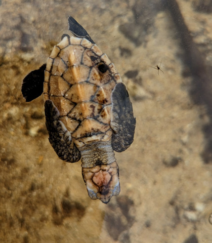 Just as we were getting into the kayak, before the capsizing, we saw a baby turtle swimming by our feet!