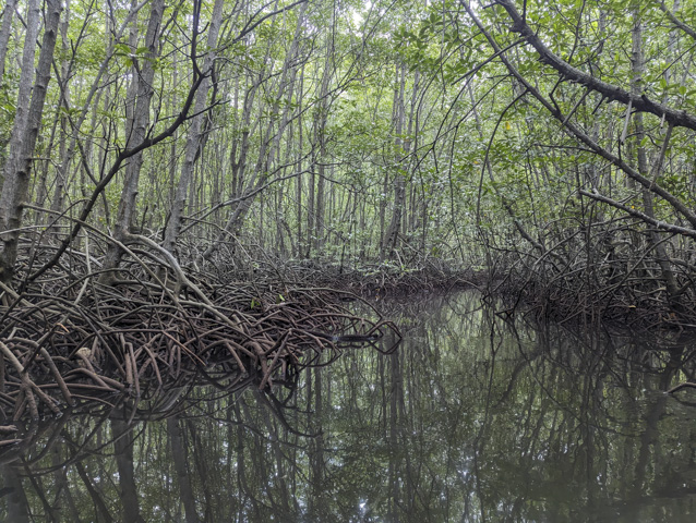 While on the island it wasn’t all lazing on the beach – we hired a couple of scooters to explore the island. Our first stop was the mangrove forest, where we hired a kayak to explore the narrow tidal channels through the roots of the plants. This was where we got our first soaking of the day as we managed to capsize the kayak!