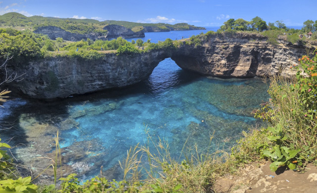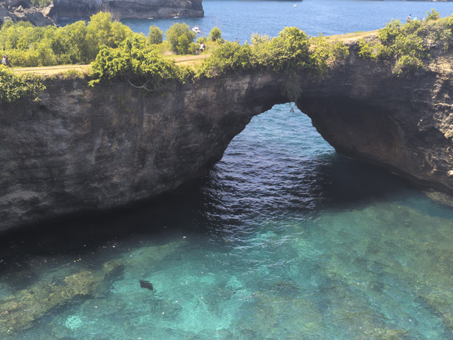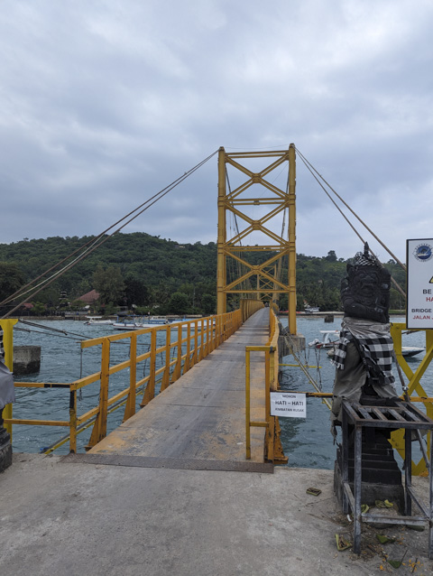 Once we had dried off we returned the kayak and scooted around the back side of the island where there is a small yellow bridge – known unsurprisingly as, The Yellow Bridge – which allows foot and scooter traffic to cross to Lemonogan’s sister island, Nusa Ceningan. This is the smallest of the three Nusa islands.