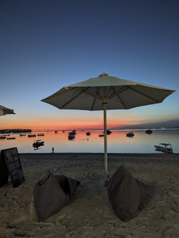 The hotel we had booked was only a 100m walk down the beach from where we landed so we didn’t even need to put our shoes back on to walk there. We were soon checked into our room, with a beautiful view from the balcony overlooking the beach. The hotel even had a small infinity pool right on the beach, amazing really for only £20 per night.