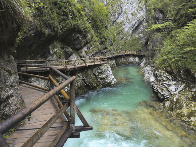There are a couple of gorges in the area, so the next day we cycled to Vintgar Gorge, just the other side of the lake from where we were staying. Curiously though the river in the gorge flowed away from Lake Bled despite being higher.