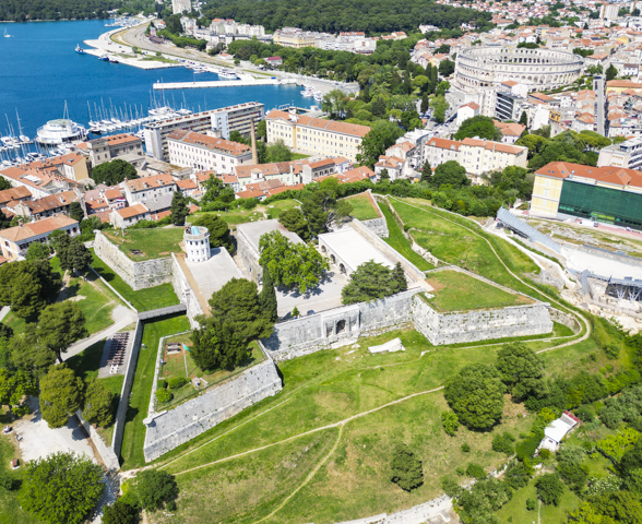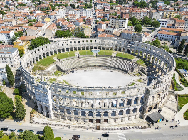 A little further along the coast from Rovinj is the busy commercial port town of Pula, with its two main attractions; the well-preserved Roman amphitheatre from the 1st century, which was able to hold up to 20,000 people for gladiatorial contests,