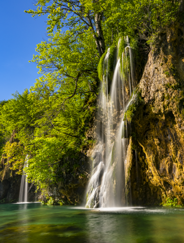 The biggest waterfall in the park, Veliki Slap, which is 78m high is in near to Entrance 1 in the lower lakes and by the time we made it down here it was getting very busy and the boardwalks along the lakes were packed with people, making progress very difficult.