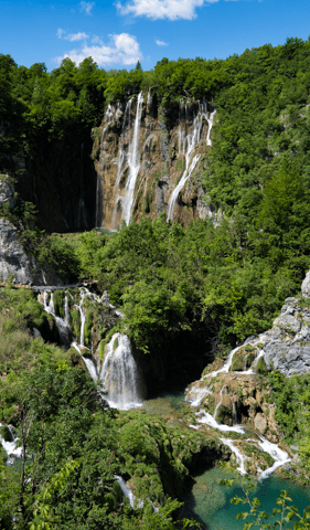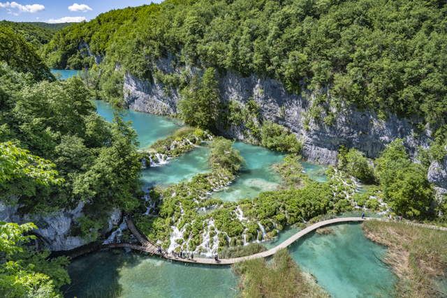 Something not to be missed and one of the jewels in the crown of Croatian tourism is Plitvice Lakes National Park. This is a series of interconnected lakes with a huge number of waterfalls between them. Fortunately we had been forewarned by Adrian and Magda that it gets incredibly busy, so we made sure that we arrived for opening time and got into the park before the tourist buses arrived and overwhelmed it.