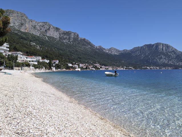There was a nice little beach down the hill from the campsite and a few restaurant bars on the beach, although only one was open, so he was doing a good trade as there were plenty of tourists around. The end of May is still considered to be out of season despite the weather being glorious, but we could see work going on at the other tavernas, clearly preparing to open shortly. Unfortunately too late for us though, as after leaving Gradac we only had a few days left in Croatia.